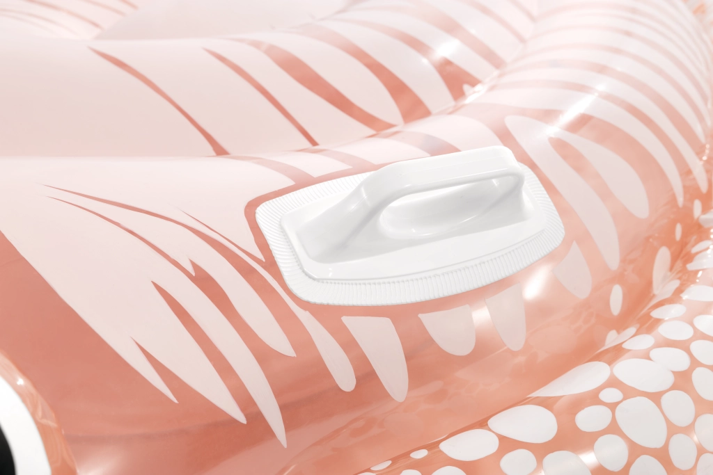 A matracot 6 éves kortól tervezték, különös tekintettel a biztonságra: a két masszív műanyag fogantyú javítja a stabilitást fel- és leszálláskor, valamint úszás közben, a két külön levegőkamra biztonsági szelepekkel pedig megkönnyíti a felfújást és leeresztést, valamint csökkenti a levegőszivárgás kockázatát. A méret és az ergonomikus forma bőséges helyet biztosít a kényelmes pihenéshez és a gondtalan lebegéshez a vízen.