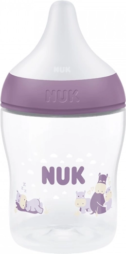 A NUK Perfect Match üveget úgy tervezték, hogy a lehető legjobban hasonlítson a szoptatáshoz. A NUK‑ra jellemző formájú cumi az anya mellbimbóját idézi, széles ajaktámaszt biztosít, valamint elegendő teret a természetes szopómozgásokhoz a nyelv és az állkapcsok számára. Átgondolt kialakításának köszönhetően a baba nem érintkezik kemény műanyag részekkel.