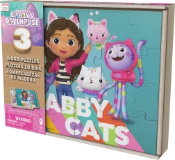 Ezek a fából készült puzzle-ök örömteli kirakást és találkozást kínálnak a népszerű Gabi babaháza (Gabby's Dollhouse) szereplőivel. Minden kép összeállítása után színes, részletes jelenet tárul fel Gabi és cicabarátai világából. A tartós anyagnak és a pontos kivágásoknak köszönhetően az elemek könnyen megfoghatók és jól illeszkednek egymáshoz.