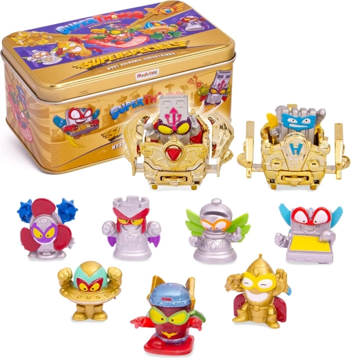 A SuperThings Superspecials exkluzív szett egy luxus arany színű fém dobozt kínál, amelyben biztonságosan tárolhatja Kaboom City kincseit. Minden figura egy életre kelt tárgyat ábrázol – legyen az bátor szuperhős vagy ravasz gazfickó – tökéletes játékhoz és a gyűjtemény bővítéséhez.
