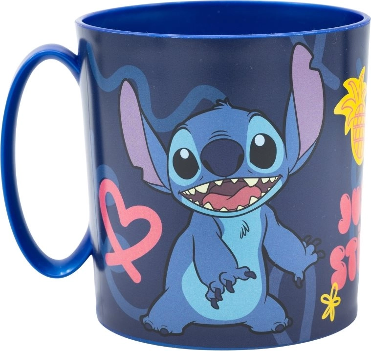 Stílusos, 350 ml űrtartalmú műanyag bögre STITCH mintával, amely a kicsi és nagy rajongóknak egyaránt örömet szerez. Mikrohullámú sütőbe tehető, BPA- és ftalátmentes, valamint könnyen tisztítható.