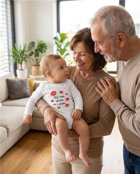 Fedezze fel a minőségi bababodyt puha, lélegző 100% pamutból, amely kíméletes az érzékeny bőrhöz és egész napos kényelmet biztosít. A „Itt járt a nagyi és a papa” vidám minta játékos hangulatot kölcsönöz az öltözetnek, és örömet szerez az egész családnak.