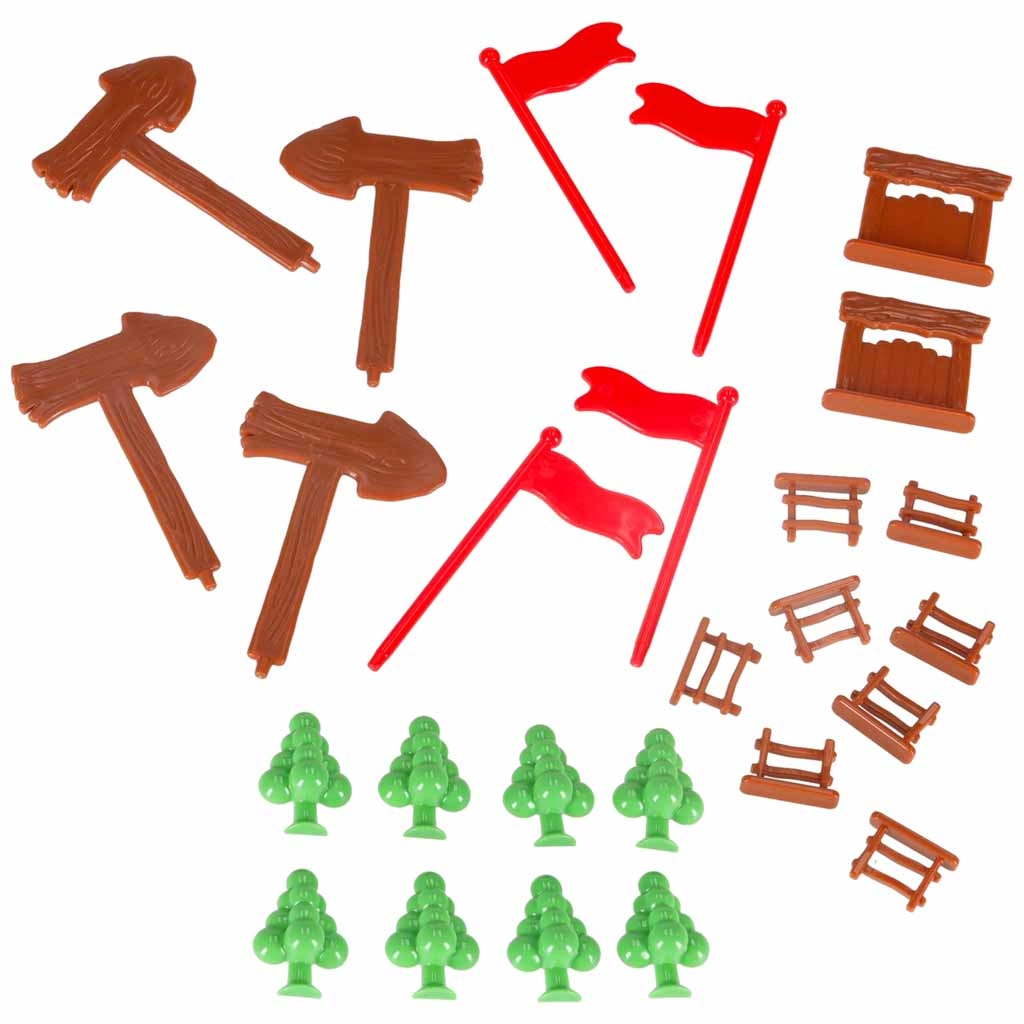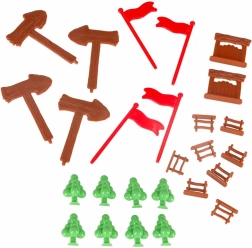- Gazdag tartozékkészlet: híd, sziklák, kerítések, zászlók, nyilak, virágok, fák