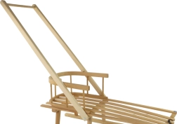 A háttámlás fa szán időtálló megjelenést ötvöz a funkcionális kivitelezéssel. Könnyű, mégis robusztus fa konstrukciója hosszú élettartamot és könnyű manőverezést biztosít. Az alsó fém talpak gondoskodnak a sima siklásról a havon és a jobb tartósságról változatos terepen.