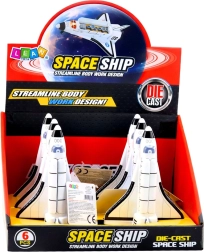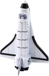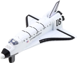 A mechanikus felhúzós meghajtásnak köszönhetően az űrrepülőgép hátrahúzás után magától elindul, ami dinamikát és mozgásélményt visz a játékba. Az élethű minták és a fekete–fehér kivitel a valódi űrjárműveket idézi, és támogatja a kreatív, tematikus játékot.