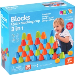 Ügyességi és oktató játék 3 az 1-ben, gyors poharak labdákkal, 38 darab