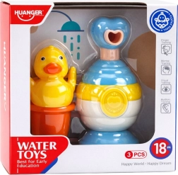 Ez a fürdőjáték-készlet minden tisztálkodást örömteli, fejlesztő tevékenységgé varázsol. A szappanadagoló gombnyomásra felhabosítja a szappant és buborékokat készít, a pohár lehetővé teszi a víz átöntését és a koordináció gyakorlását, a víz felszínén úszó kiskacsa pedig serkenti a fantáziát és a tematikus játékot.