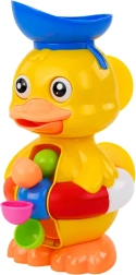 Az interaktív fürdőkacsa vidám színeivel és okos vízkörével ragadja meg a gyerekek figyelmét. Elég vizet önteni a felső tölcsérbe/kalapkába, és a gyerek figyelheti, ahogy a szemek forogni kezdenek, kinyílik a csőr, és a vízsugár mozgásba hozza a hason lévő körhintát. Szórakozás, amely természetes módon fejleszti az érzékelést, a koncentrációt és az ügyességet.