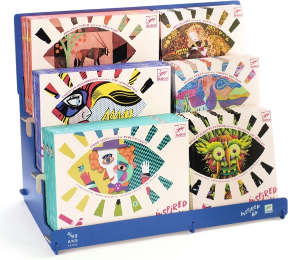 Ez a prezentációs állvány a DJECO Inspired By művészeti kollekció termékeinek elegáns bemutatására készült. Tiszta és vonzó elrendezést biztosít, amely kiemeli az egyes darabok dizájnját és színeit, ezzel támogatva az értékesítést.