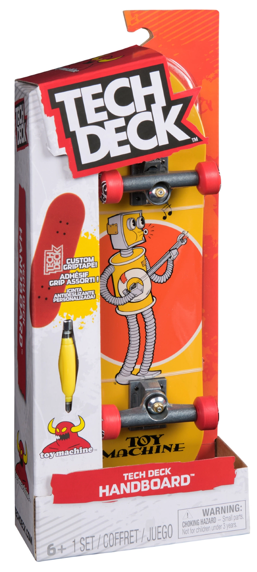 Fedezd fel a szórakozást a TECH DECK Toy Machine maxi 27 cm-es handboarddal! Ez a nagyobb méretű ujj‑gördeszkalap a Spin Mastertől ideális a koordináció fejlesztésére és új ujjtrükkök megtanulására. Autentikus dizájnt, minőségi kidolgozást kínál, és remek módja annak, hogy bárhol, bármikor élvezd a skate kultúrát. A csomag tartalmaz egy eszközt is a könnyű beállításhoz és karbantartáshoz.