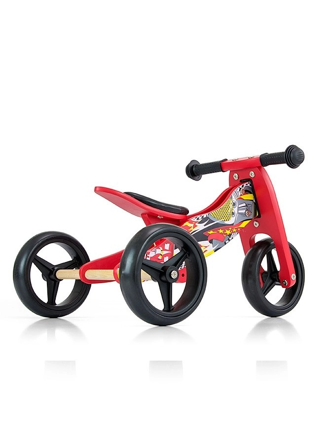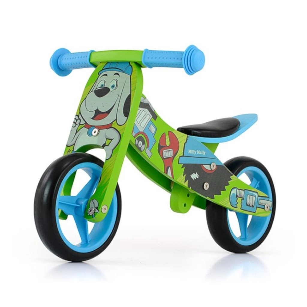 A 2az1-ben MILLY MALLY Jake futóbicikli ideális választás 18–36 hónapos gyerekeknek, akik most tanulnak bringázni. Az egyszerű átváltás háromkerekűről kétkerekű futóbiciklire lehetővé teszi, hogy a gyermek fokozatosan megtanulja tartani az egyensúlyt és áttérjen az önálló haladásra. A könnyű és stabil fa konstrukció habkerekekkel karbantartást nem igényel, és kíméletes a padlóhoz.
