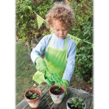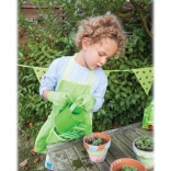 A zöld színű gyerek kerti kesztyűk ideálisak a kis kertészeknek. Puha pamutszövetből készültek a kényelmes viseletért, rugalmas mandzsettával a biztos kéztartásért, és kényelmet, védelmet, valamint remek fogást nyújtanak a földdel és növényekkel végzett munka során.