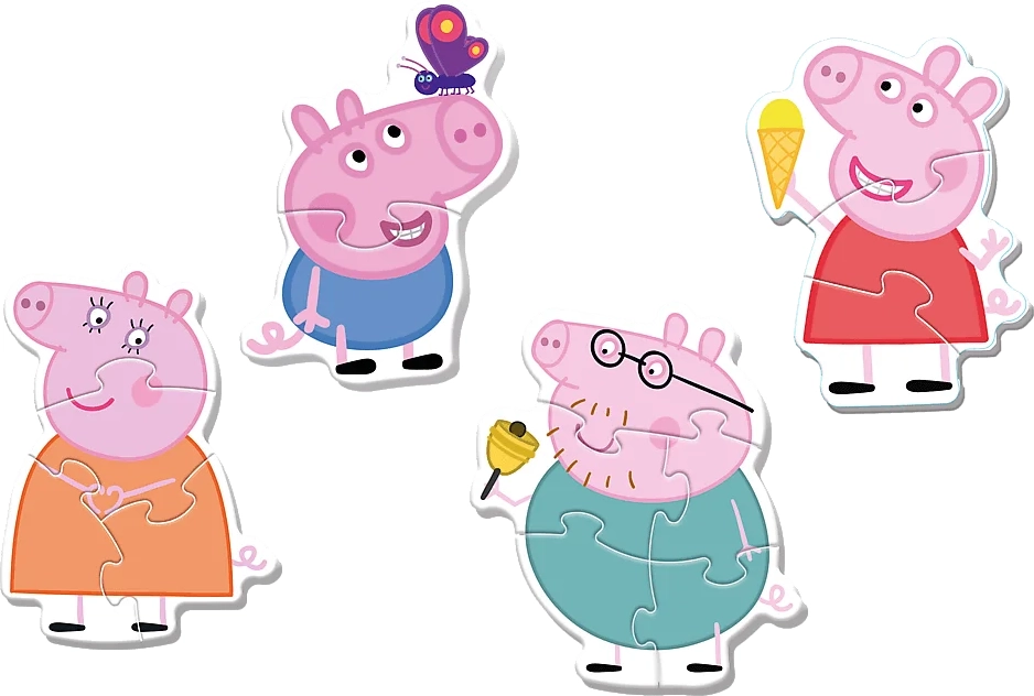 Fedezze fel a szórakoztató baby puzzle-t Peppa malaccal a Trefl márkától – ideális első kirakó 2 éves kortól. A 4 az 1-ben készlet 3, 4, 5 és 6 darabos képeket tartalmaz, amelyek nagy, 4 mm vastag elemeiknek köszönhetően a legkisebb kezek számára is könnyen megfoghatók. A kirakás fejleszti a finommotorikát, a kéz–szem koordinációt és a térbeli tájékozódást.