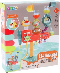 A szett része egy minizuhany, amelyet a kiskacsa megnyomásával lehet aktiválni. A folyamatos keringéshez elég a alsó csövet a vízbe meríteni. A játék a két tapadókorongnak köszönhetően megbízhatóan rögzíthető a sima csempére vagy a kád falára. A minőségi műanyag ellenáll a víznek és a gyakori használatnak.