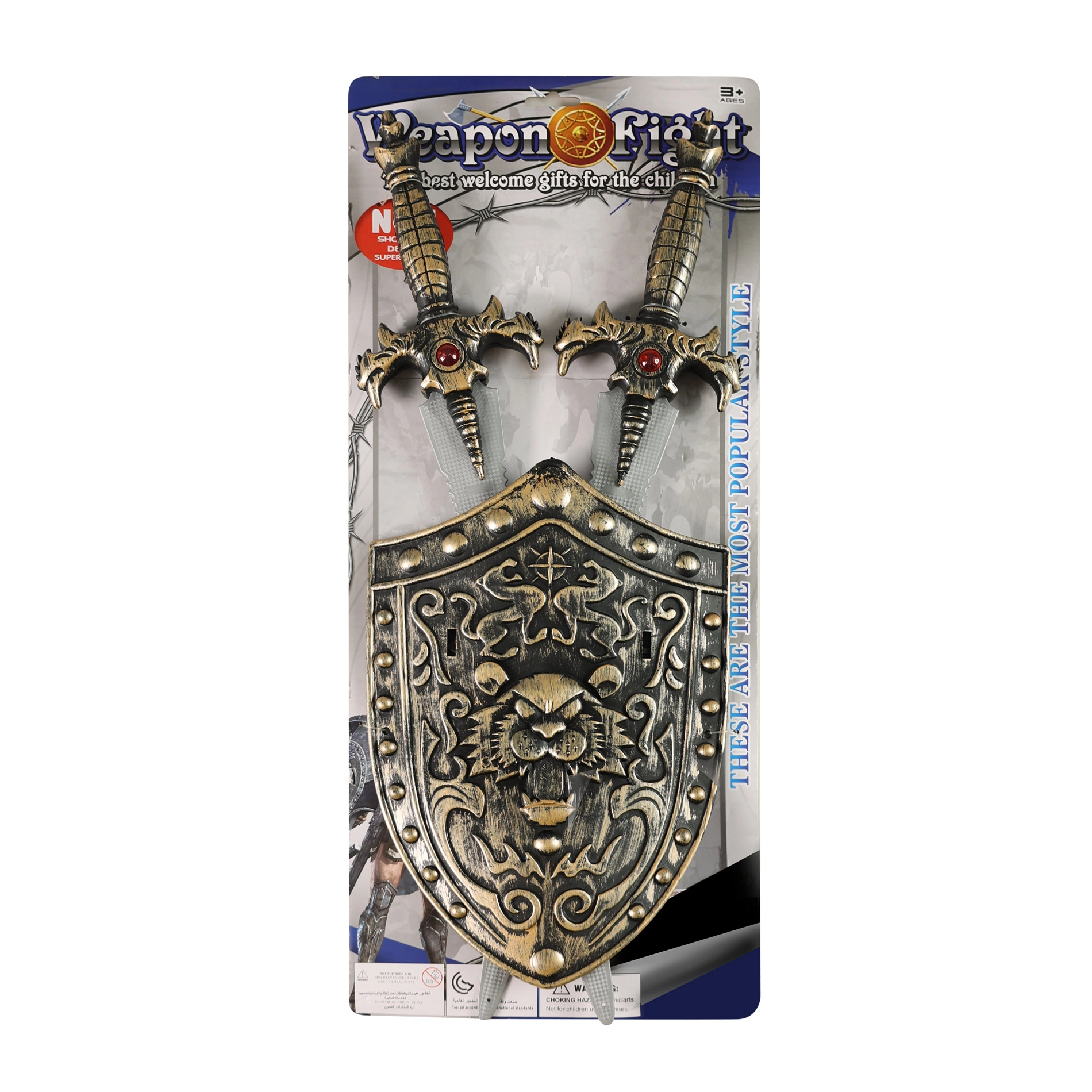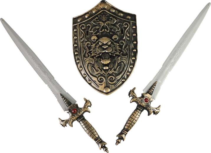 A felszerelés úgy lett tervezve, hogy jól illeszkedjen a gyermeki kézbe, és bírja az intenzív játékot. A pajzs megbízható „védelmet” nyújt, a két kard pedig lehetővé teszi a párbajt vagy a páros játékot.
