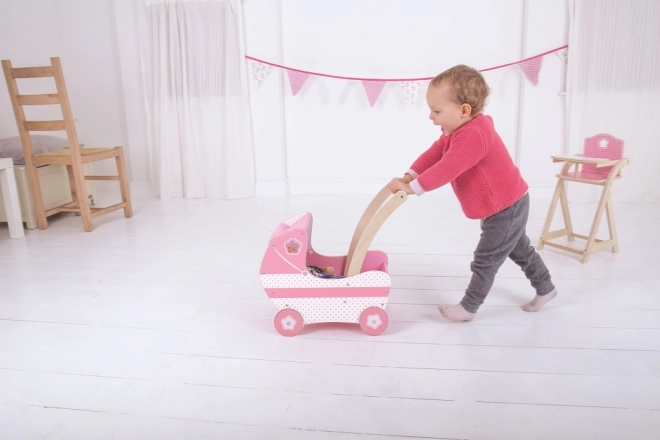 Ez a gyönyörű rózsaszín babakocsi szövet napernyővel és dekoratív, faragott részletekkel van ellátva, amelyek minden kisleány örömére szolgálnak. A játék segíti a kreativitás és a szociális készségek fejlesztését.