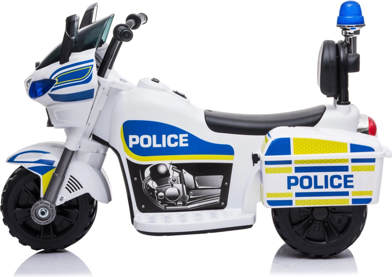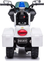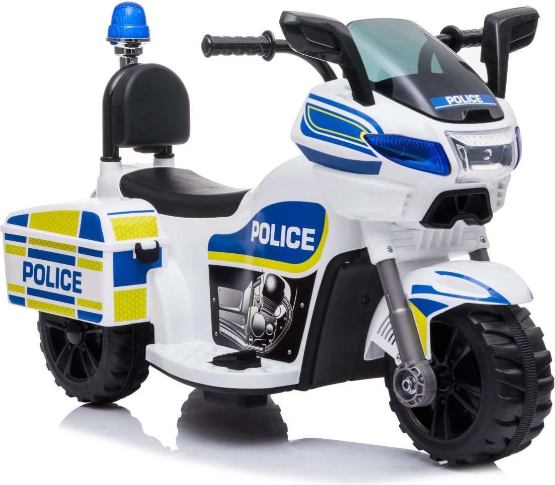 Stílusos elektromos gyerek rendőrmotor fehér–kék kivitelben, amely valósághű rendőri akciót nyújt villogó fényekkel, szirénahanggal és egyszerű előre/hátra vezérléssel. A stabil háromkerekű kialakítás, az ergonomikus háttámlás ülés és a legfeljebb 3 km/h sebesség biztonságos szórakozást garantál otthon és a szabadban egyaránt. Beépített MP3 bemenet, duda és zenegombok segítik a szerepjátékot és a koordináció fejlesztését.