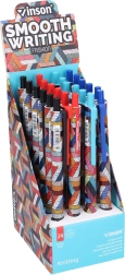 4 különböző sapkaszín közül választhat – fekete, piros, világoskék és kék – így a toll könnyen illeszthető a stílusodhoz vagy rendszerezésedhez. 24 darabos csomag display dobozban, üzletekbe, irodákba és iskolákba egyaránt megfelelő.