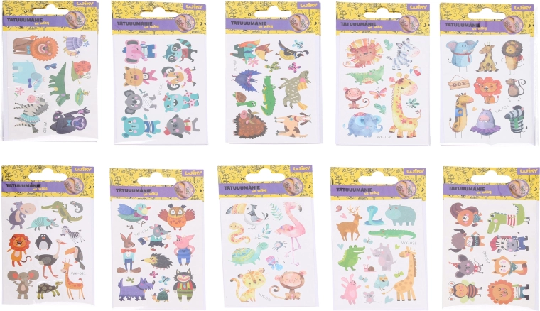 Aranyos állatos tetoválásmatricák 7,5 × 11 cm-es méretben, amelyek gyerekeknek és felnőtteknek egyaránt örömet okoznak. Könnyű felhelyezés, hosszan tartó hatás és biztonságos összetétel a mindennapi szórakozáshoz. Egyszerű felvitel, állatos motívumok keveréke és ideális méret a gyerekek bőrére.