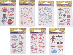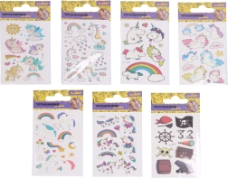 Szórakoztató gyerek tetoválás matricák, amelyek a sötétben világítanak, örömet szereznek a fantázia és kalandok kis rajongóinak. A praktikus 6 × 10,5 cm-es formátum és a nagy unikornis és kalóz motívum mix tökéletes bulikra, ajándékba és a mindennapi játékhoz is.