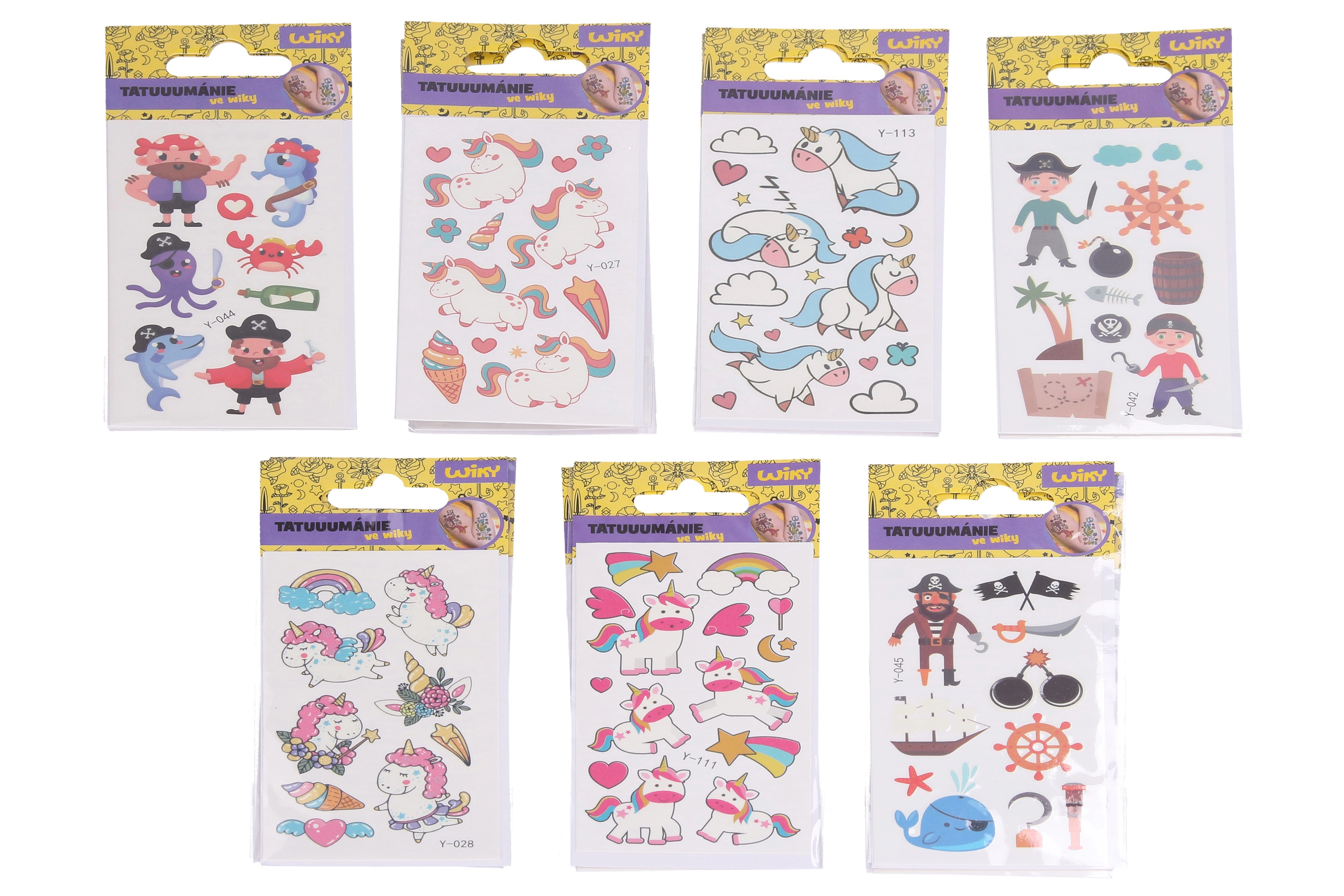 Fedezd fel az ideiglenes tetoválások varázsát, amelyek fény hatására felragyognak a sötétben. A gyerekek kedvükre választhatnak a népszerű unikornis és kalóz motívumok közül, és egyedi stílust alkothatnak hétköznapokra, ünnepségekre vagy gyerek farsangra.