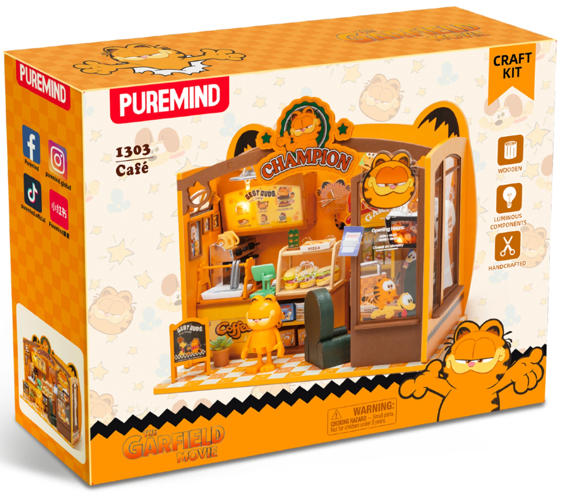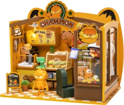 Ez a részletgazdag fa készlet egy otthonos kávézó jelenetet ábrázol a The Garfield Movie inspirációjával. A precízen kivágott elemek pontosan illeszkednek egymáshoz, és jellegzetes beltéri részletekkel rendelkező, dekoratív diorámát hoznak létre. Az integrált LED világítás kiemeli a hangulatot, és a kész modellt figyelemfelkeltő kiegészítővé varázsolja polcra vagy íróasztalra.