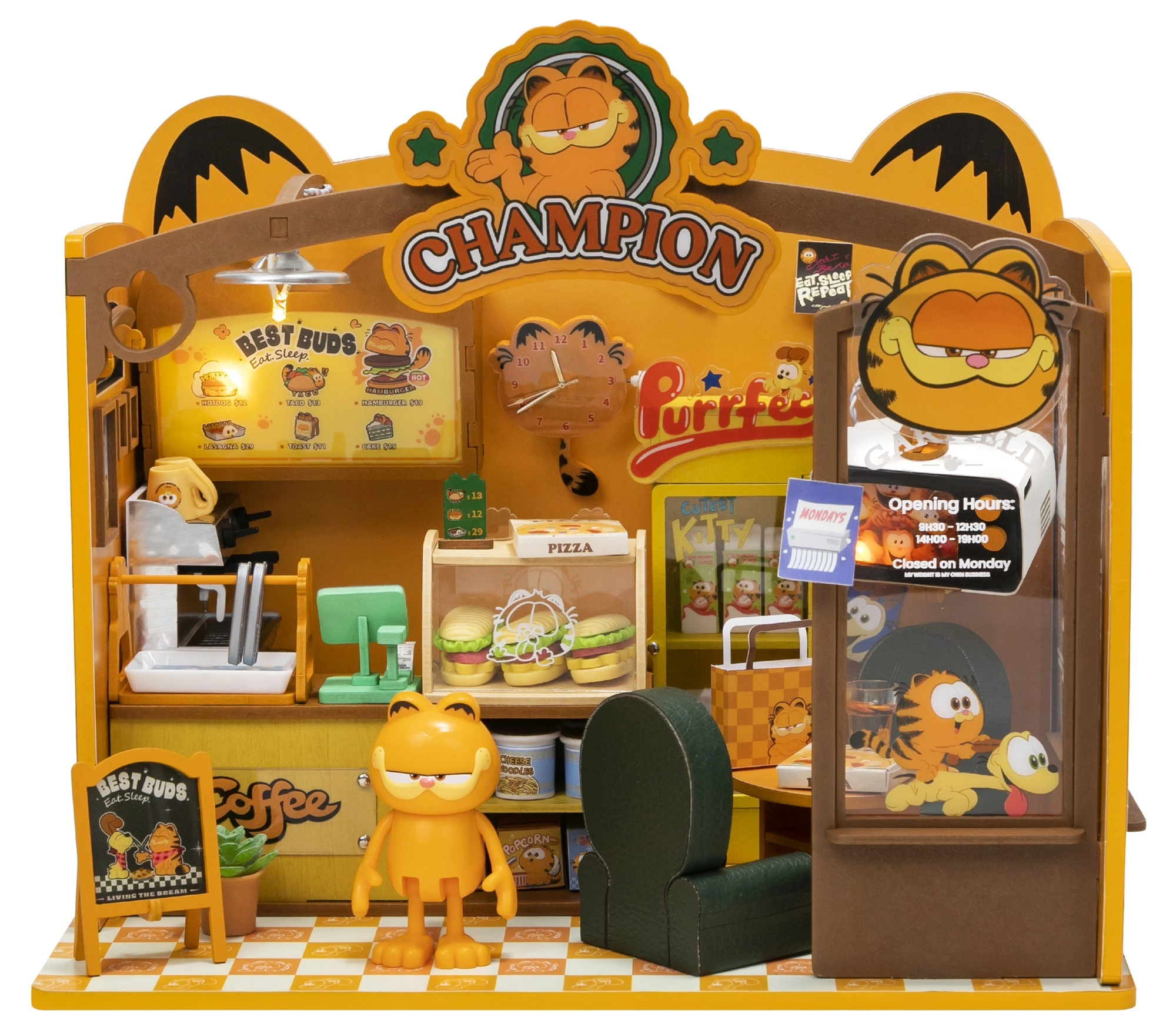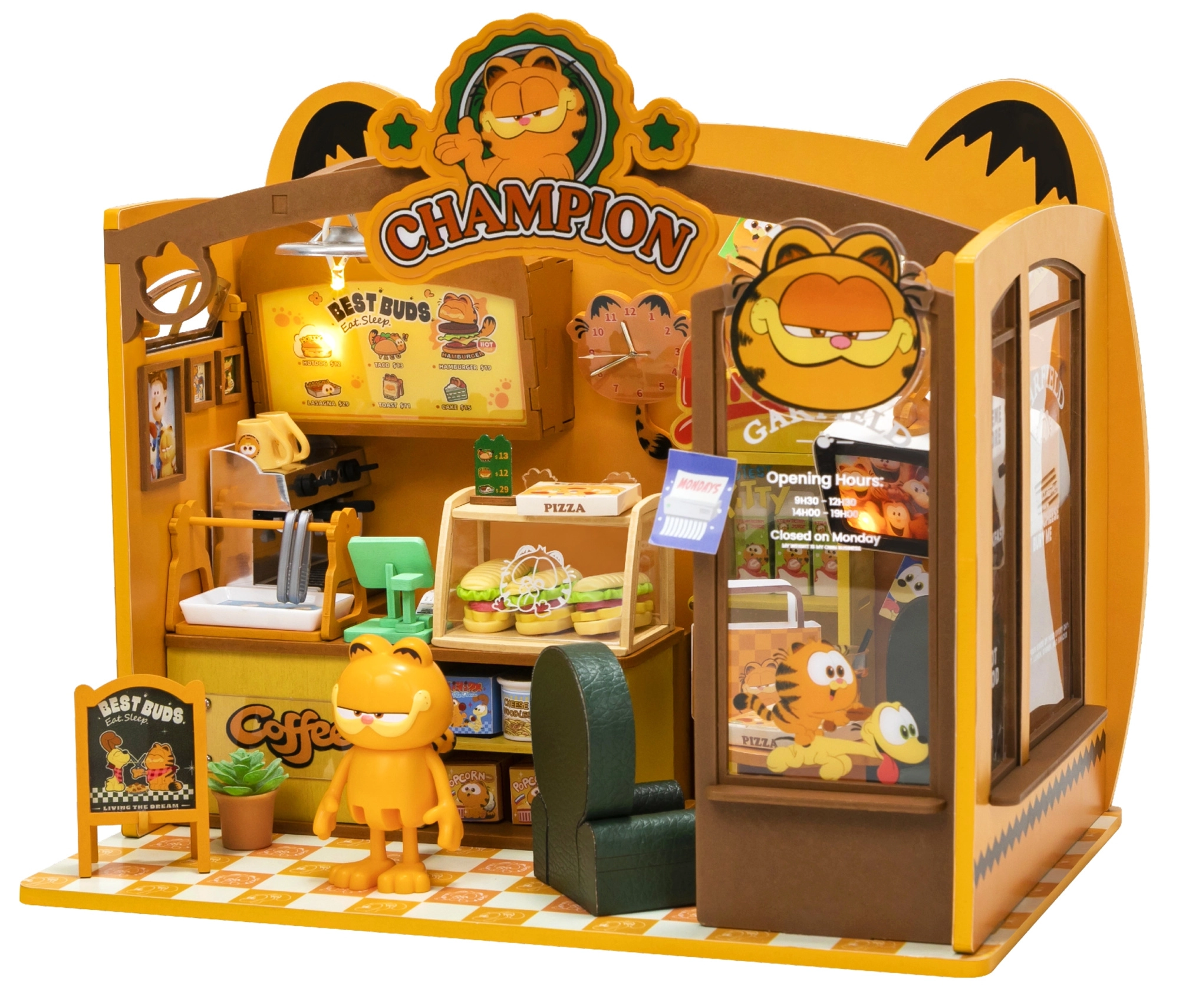 A modellt szórakoztató építésre és kiállításra tervezték, kiváló választás Garfield-rajongóknak és fa makettek gyűjtőinek. A csomagban áttekinthető útmutató, díszítő elemek és figura található, így az első lépéstől az utolsóig zökkenőmentes az összeszerelés.