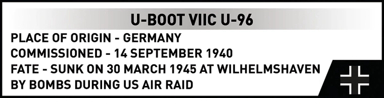 A modell a híres U-96 tengeralattjárót idézi meg, amely a DAS BOOT könyvből és filmből ismert – történelem és popkultúra találkozása a gyűjteményedben.