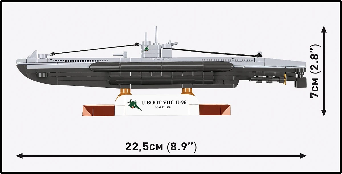 Visszaadja az U-96 jellegzetes vonalait, beleértve a törzset, a periszkópos tornyot és a fedélzeti ágyút. Ideális vitrínbe vagy íróasztalra.
