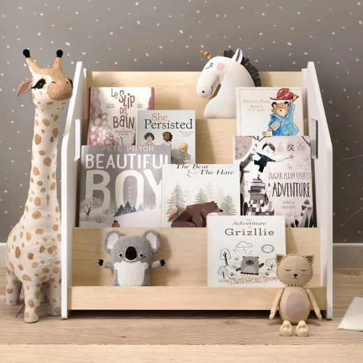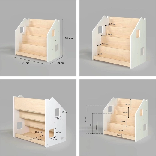 A BusyKids könyvállványt úgy tervezték, hogy a gyerekek áttekinthetően lássák a könyvborítókat, és önállóan választhassanak, illetve tegyék vissza a könyveket. Tiszta, időtálló megjelenése remekül illik gyerekszobába, játszószobába és nappaliba is. Az elülső polcok kézközelben tartják a kedvenceket, míg a hátsó tárolórész további könyveket vagy játékokat fogad be.