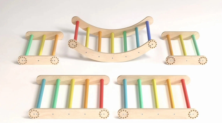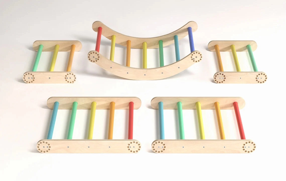 Két háromszöget és egyensúlyozó ívet könnyedén átalakíthat padlópályáról falra szerelhető mászófallá. Ideális a motorika és az egyensúly fejlesztéséhez.