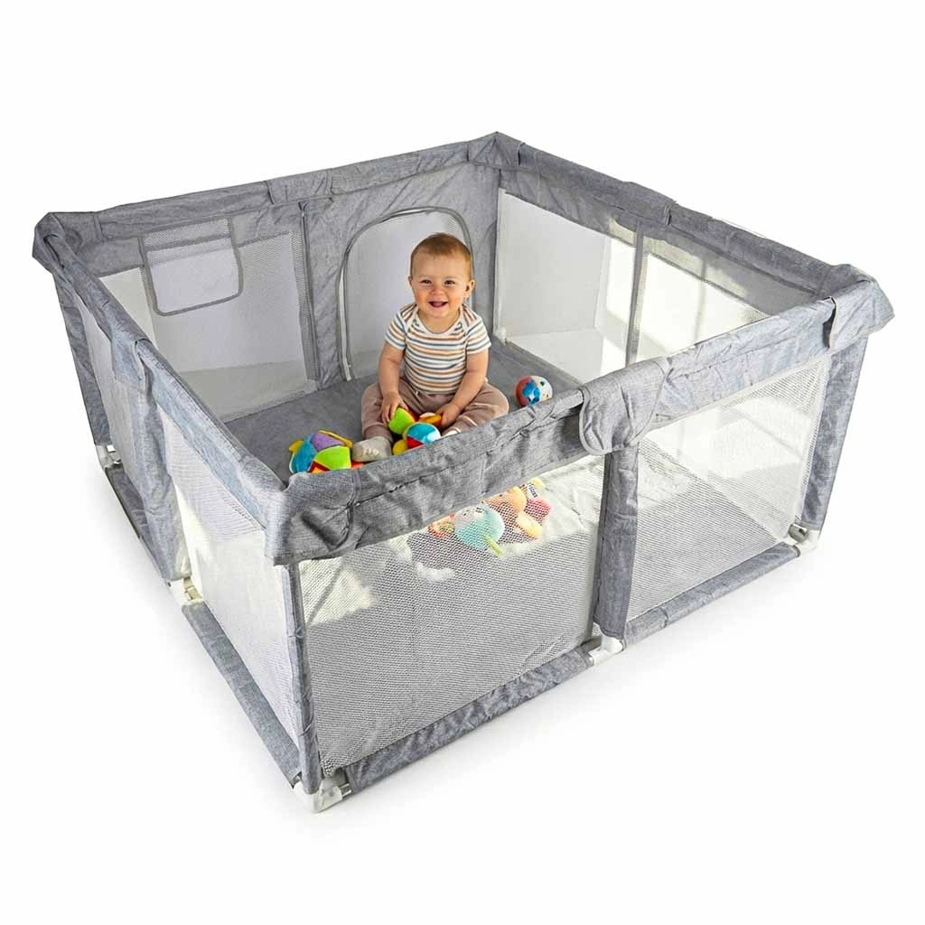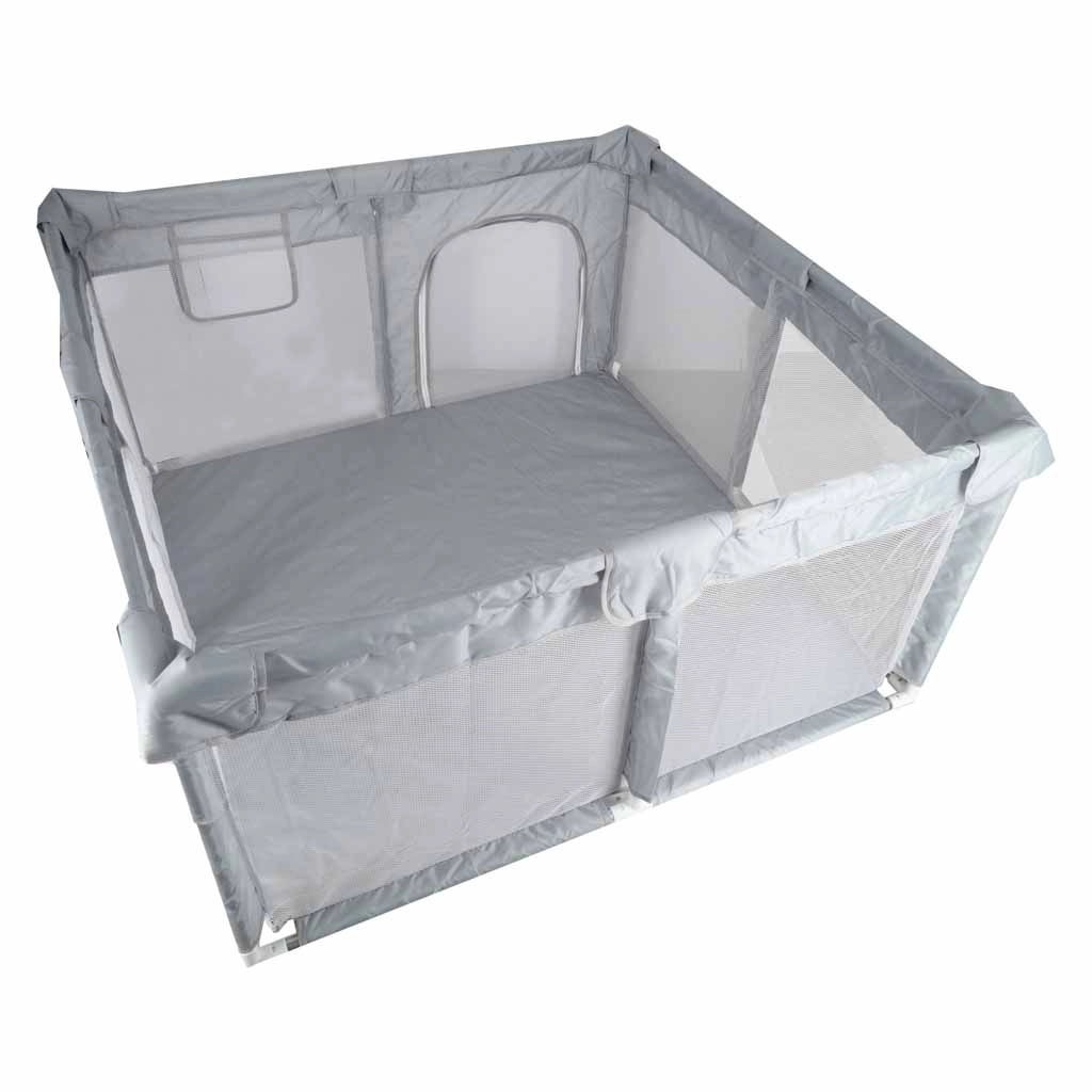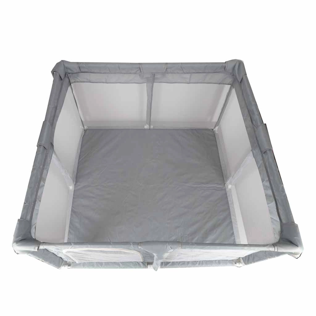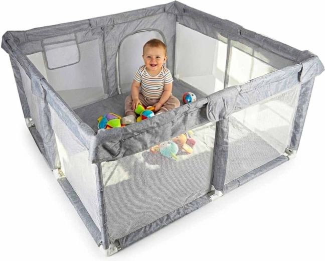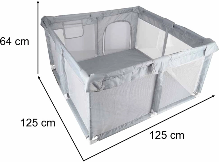 A 120 × 120 cm méretű praktikus gyermek járóka biztonságos és tágas helyet teremt játékra és pihenésre. A hálós falaknak köszönhetően a baba mindig szem előtt van, a cipzáras bejárat megkönnyíti a hozzáférést, a szerszám nélküli, egyszerű összeszerelés pedig időt takarít meg. A stabilitást tappancsos csatlakozók biztosítják, a puha textil szegélyek pedig növelik a biztonságot és a kényelmet.