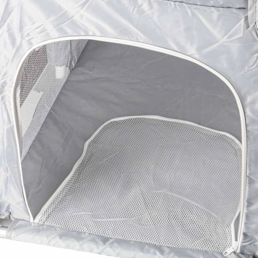 A cipzárral zárható nyílás lehetővé teszi, hogy a gyermekek kényelmesen bemásszanak és kimásszanak, a szülőknek pedig megkönnyíti a használatot.