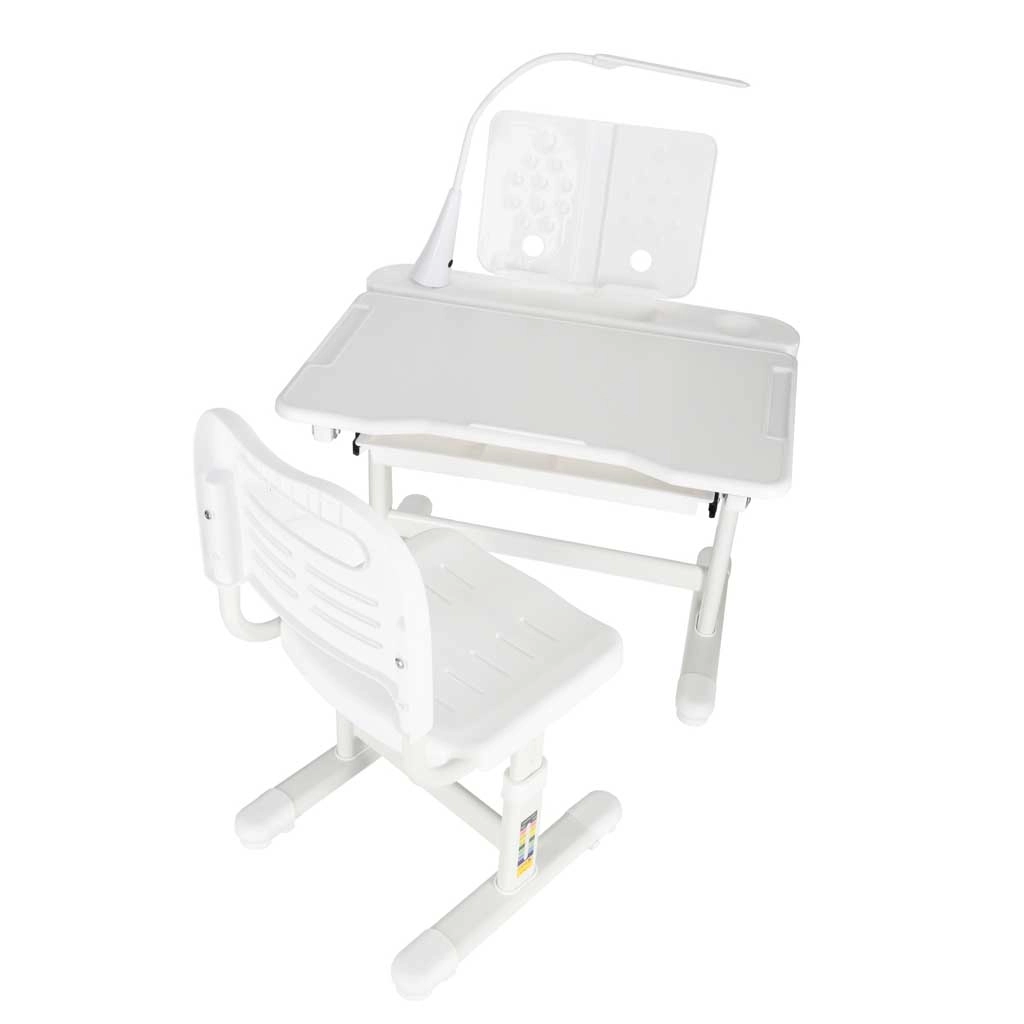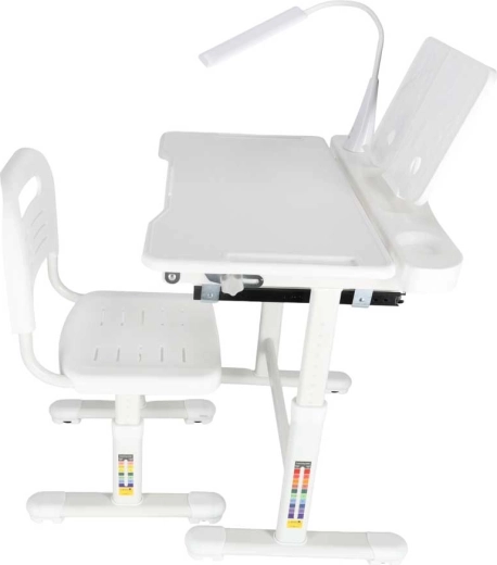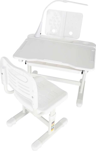 Ez a modern gyerekszett együtt nő a gyermekkel: a 53–71 cm között állítható asztal és a 28–40 cm ülésmagasságú, állítható szék könnyen igazodik az alkatához és tevékenységeihez. A 60°-ig dönthető munkalap helyes ergonómiát biztosít íráshoz, olvasáshoz és rajzoláshoz, tehermentesítve a gerincet.