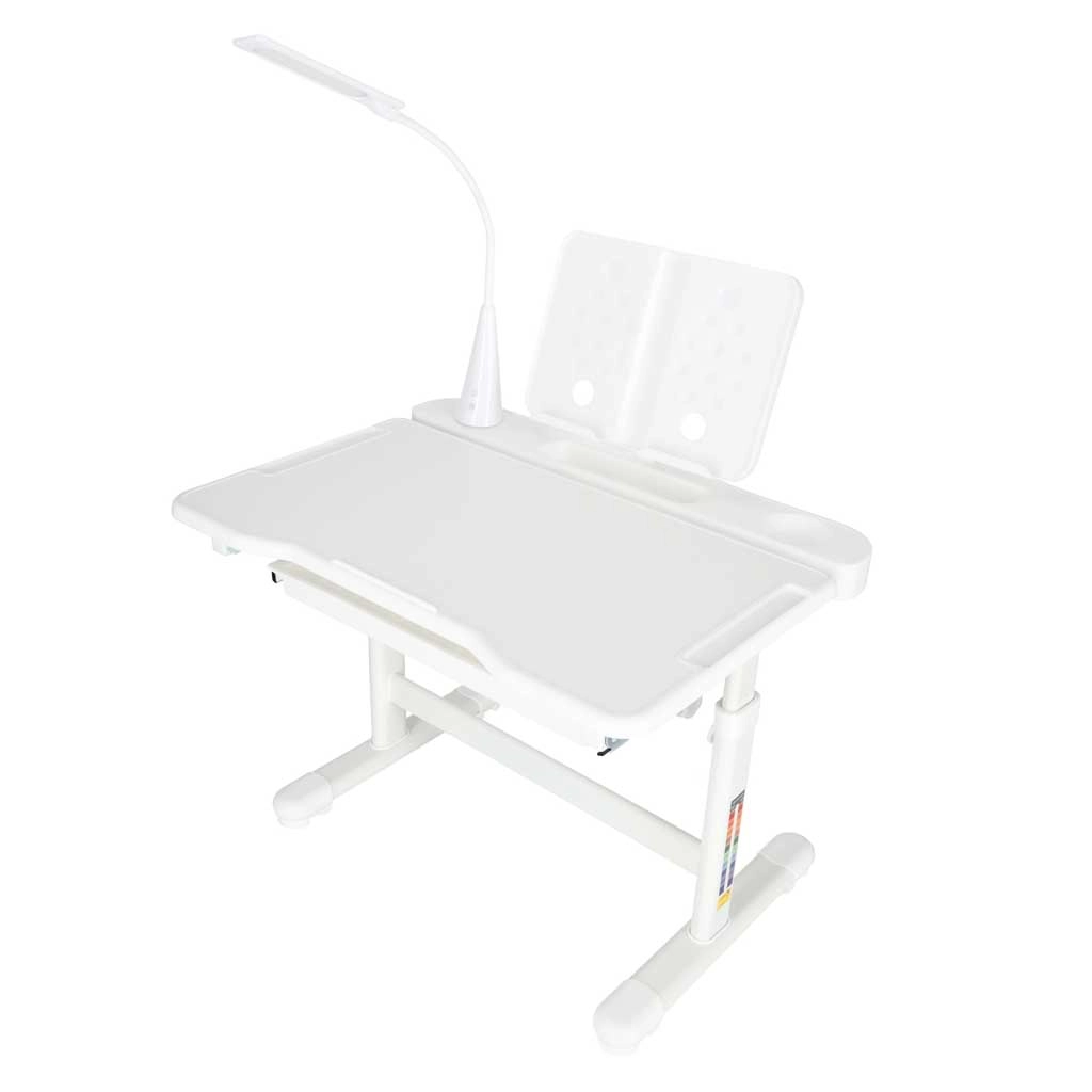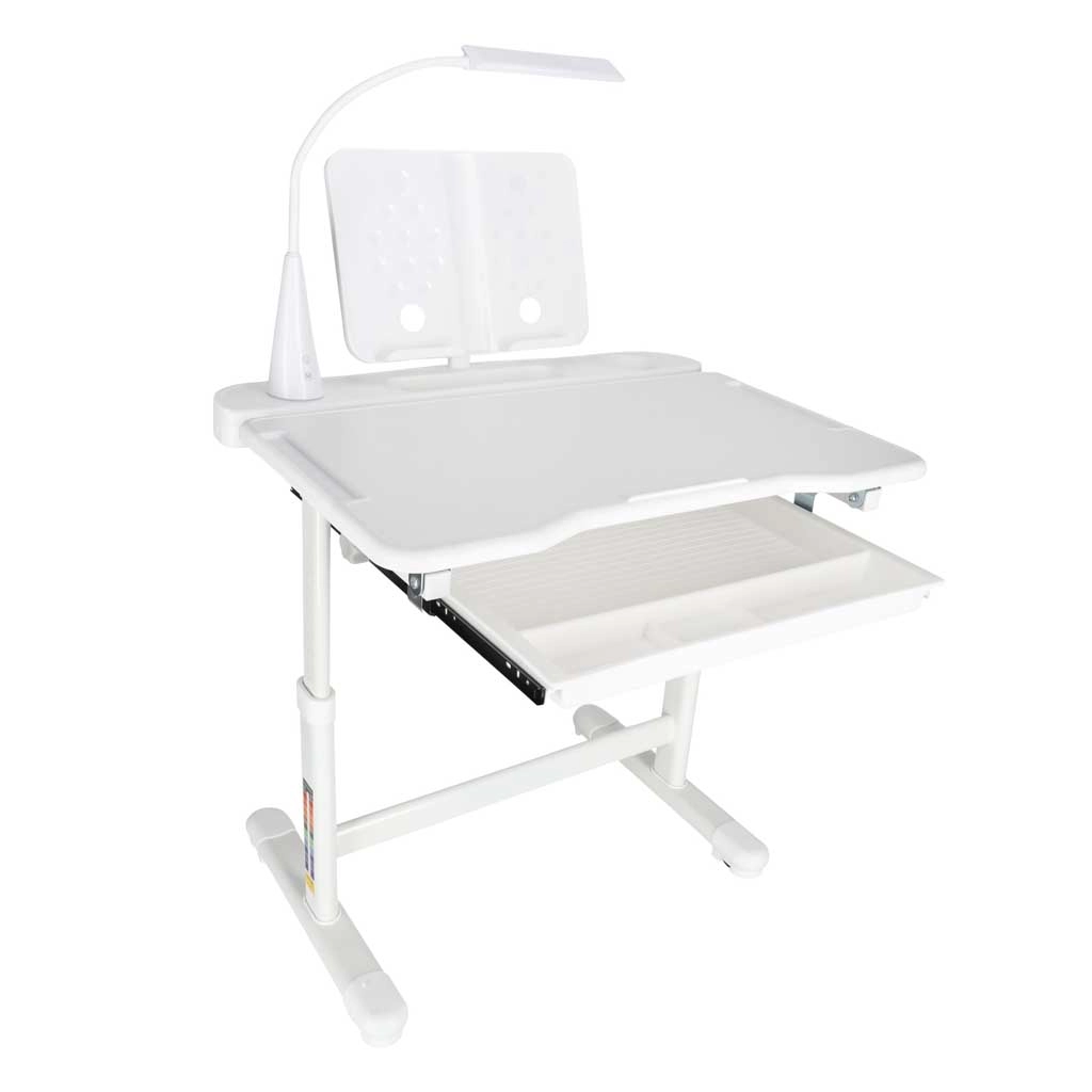 Az integrált, USB-s LED lámpa 3 fényárnyalatot (meleg, hideg, kevert) és 3 fényerőszintet kínál az optimális megvilágításhoz a nap bármely időszakában. A széles, rekeszes, kihúzható fiók és a könyv/tablet tartó átláthatóan és kéznél tartja az eszközöket. A biztonságos, lekerekített élek és a masszív, keretes szerkezet fémből, MDF-ből és műanyagból stabilitást és hosszú élettartamot garantál.