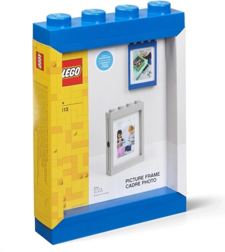 Stílusosan állítsd ki emlékeidet a kék LEGO fényképkerettel. Lehetőség van falra akasztásra és asztalra vagy polcra helyezésre is, két fotóméretet támogat (10×15 cm és 12×17 cm), továbbá kompatibilis a minifigura vitrinekkel – könnyedén egymásra rakhatók, mint a klasszikus LEGO elemek.