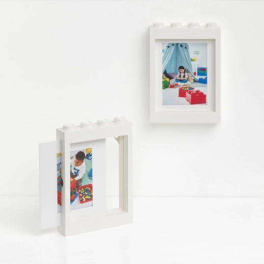 Az elegáns fehér LEGO képkeret ideális választás mindenkinek, aki kedvenc fényképeit szem előtt szeretné tartani. Okos kialakításának köszönhetően falra akasztható vagy szabadon elhelyezhető éjjeliszekrényen, komódon vagy polcon. A karton betét két népszerű fotómérethez igazodik, így könnyedén behelyezheted a 10×15 cm-es és a 12×17 cm-es képeket.
