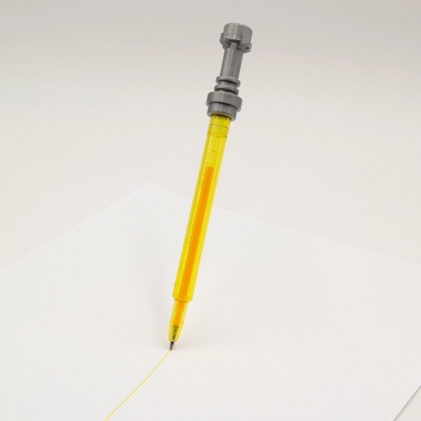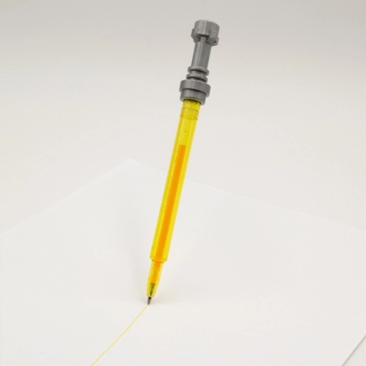 Változtasd a hétköznapi írást galaktikus kalanddá ezzel a stílusos, a legendás fénykard ihlette zselés tollal a STAR WARS sagából. A finom, 0,7 mm-es hegy és a sárga zselés tinta gördülékeny, tiszta írást biztosít, amely harmonizál a toll testének színével.