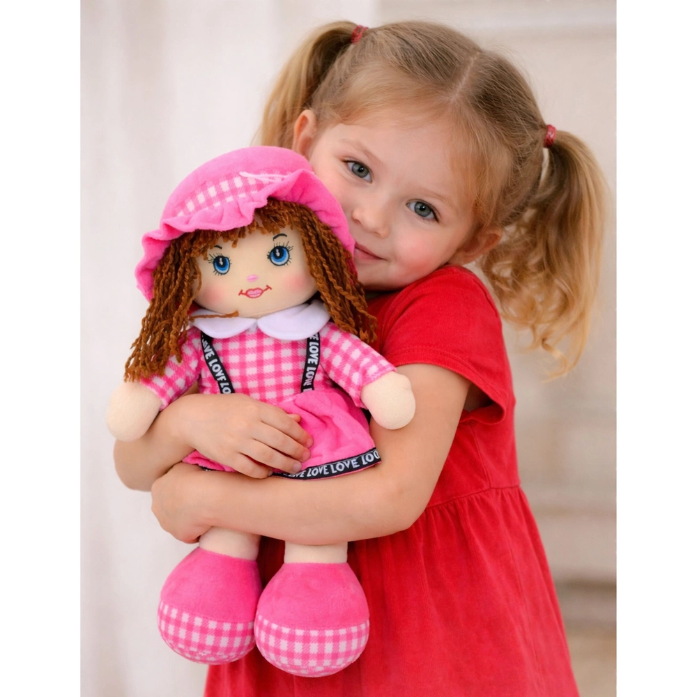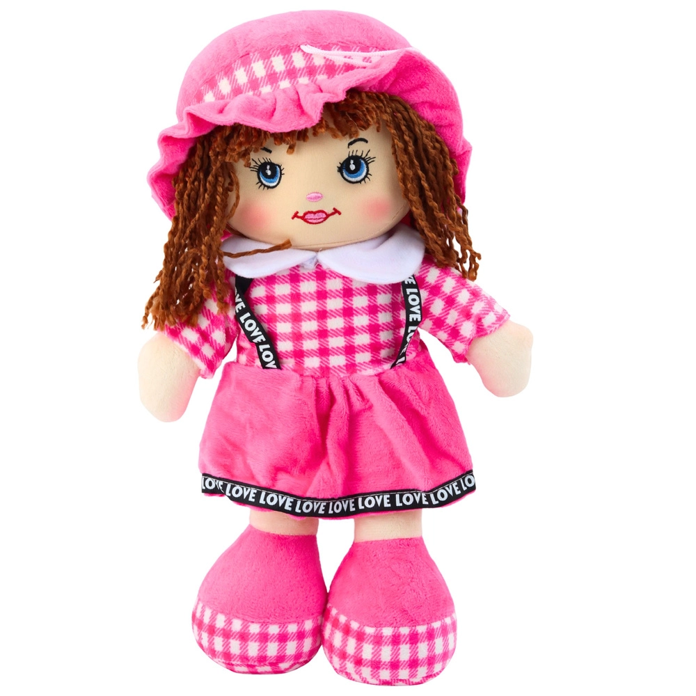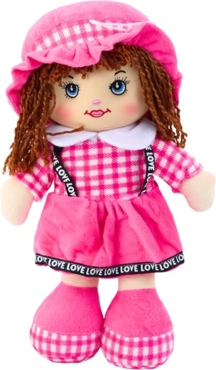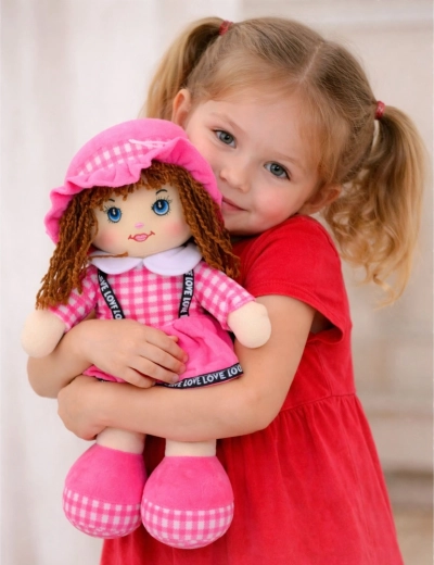 A 35 cm magas, aranyos rózsaszín szövetbaba ideális társ a mindennapi játékhoz és ölelgetéshez. Puha, biztonságos anyagokból készült, finom töltettel és hímzett arcvonásokkal, apró alkatrészek nélkül. Stílusát a rózsaszín kockás szoknya, kalap és puha cipőcskék egészítik ki – tökéletes a képzeletbeli játékhoz és a gondoskodó készségek gyakorlásához.