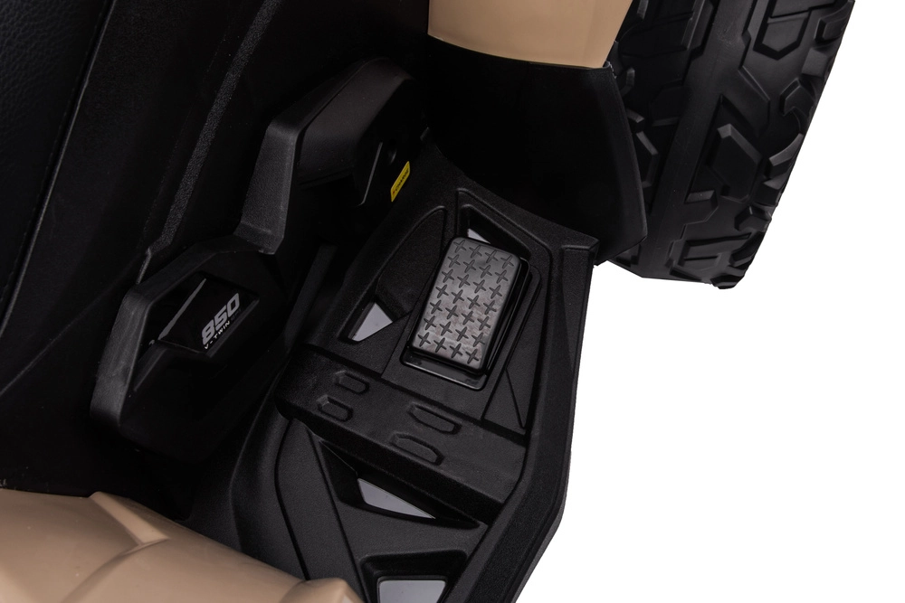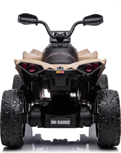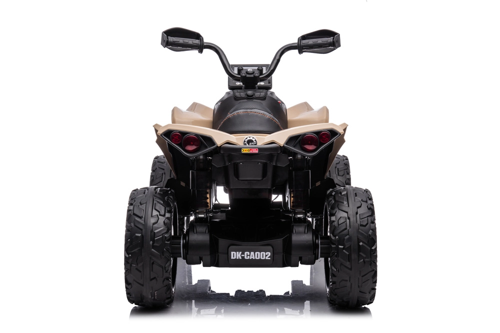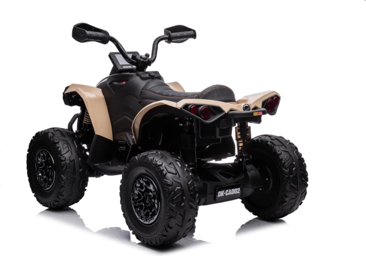 Stílusos gyermek elektromos quad, a CAN‑AM ATV által inspirálva khaki színben, rengeteg szórakozást kínál az udvaron és a parkban egyaránt. A masszív terepkerekeknek, a 4x4 megjelenésű hajtásnak, a kényelmes ülésnek és a funkcionális LED világításnak köszönhetően élethű hatást kelt, és kész a mindennapi kalandokra.