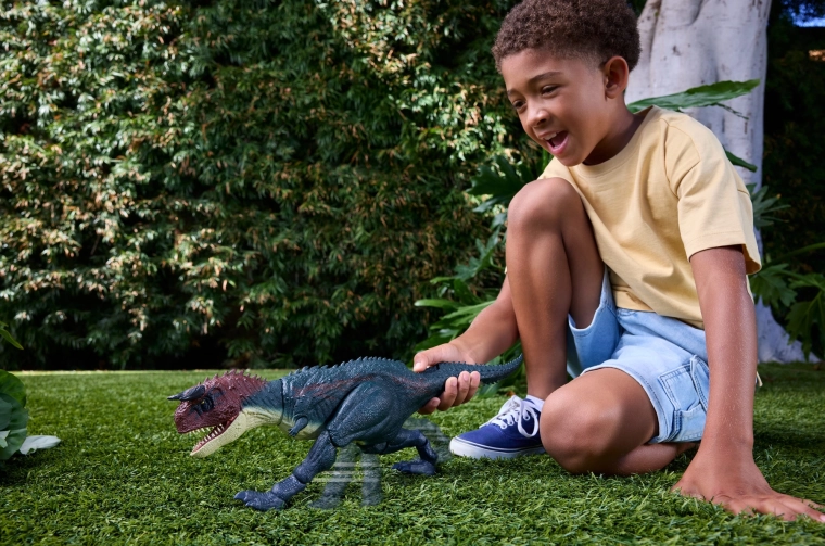 Ez a részletgazdagon kidolgozott Jurassic World figura intenzív akciót visz a gyerekszobába. Az innovatív mechanizmus, amely a farok tövénél lévő gombbal aktiválható, futó pózba mozgatja a lábakat, kinyitja az állkapcsot és hatalmas dinoszaurusz-üvöltéseket indít a még erőteljesebb játékélményért. A jellegzetes szarvak, a texturált bőr és a filmes részletek remek választássá teszik játékhoz és kiállításhoz egyaránt.