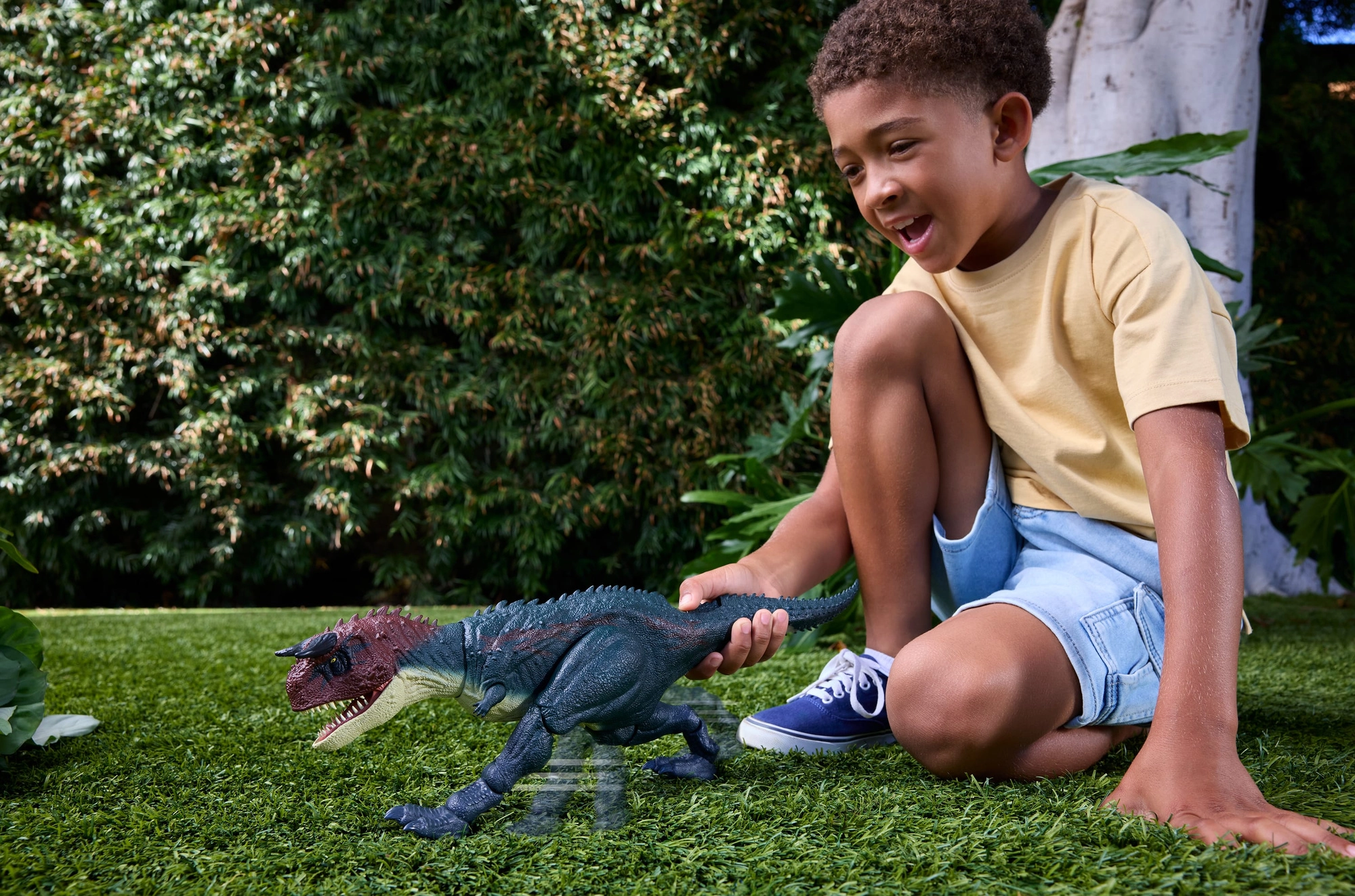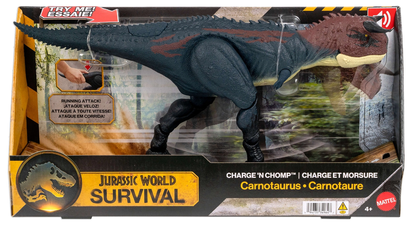 Texturált bőr, szarvak és a Jurassic World által ihletett filmes színek teszik a Carnotaurust látványos figurává játékhoz és gyűjtői kiállításhoz.