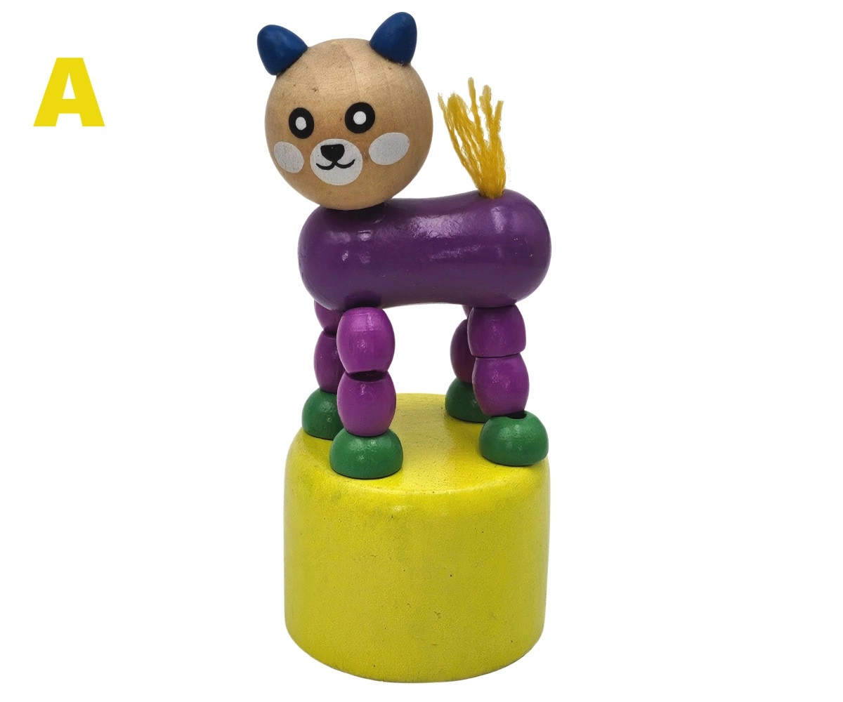 Fedezze fel a klasszikus fa játék varázsát, amely fejleszti a gyermeki fantáziát és a finommotorikát. Az alap megnyomására az állatka mozgásba lendül, viccesen megbillen és táncra perdül – ideális rövid, játékos pillanatokhoz otthon és útközben.