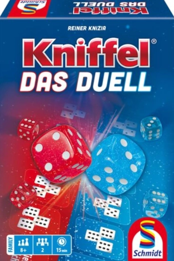 A Schmidt márkájú Kniffel: Das Duell a klasszikus kockajáték pörgős, szórakoztató, kétfős változata. A KNIFFEL jól ismert szabályainak köszönhetően könnyen belemerülsz a játékba hosszú magyarázat nélkül. A hangsúly a taktikán, a gyors döntéseken és a kombinációk okos kihasználásán van, amelyek előnyt szerezhetnek az ellenféllel szemben.