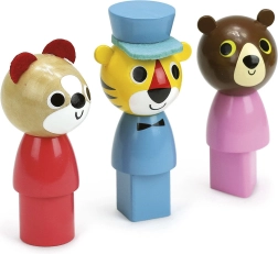 A fa és a színpompás alakú figurák növelik a gyermekek finommotorikai készségeit és ösztönzik a kreativitást.