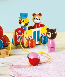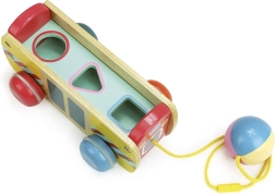 Ez a húzható busz minőségi fából készült, és nemcsak szórakozást, de kihívást is nyújt a kis gondolkodóknak. A színpompás színek és az állatok, amelyek beilleszthetők és kivehetők, több területen is támogatják a gyermekek fejlődését: