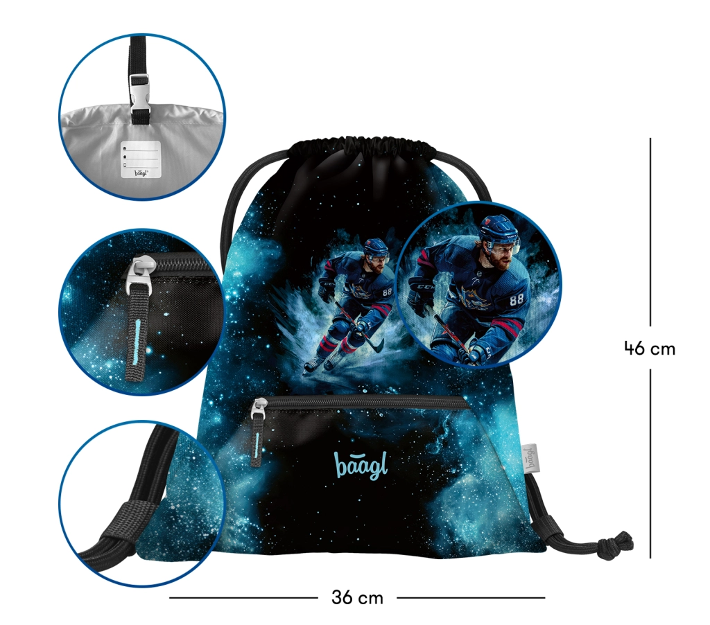 Könnyű és strapabíró BAAGL zsák JÉGKORONG mintával – remek választás iskolásoknak és aktív gyerekeknek. Elfér benne váltócipő, sportfelszerelés és szabadidős holmi. A cipzáras zseb jóvoltából az apróságok mindig kéznél és átláthatóan elrendezve lesznek.