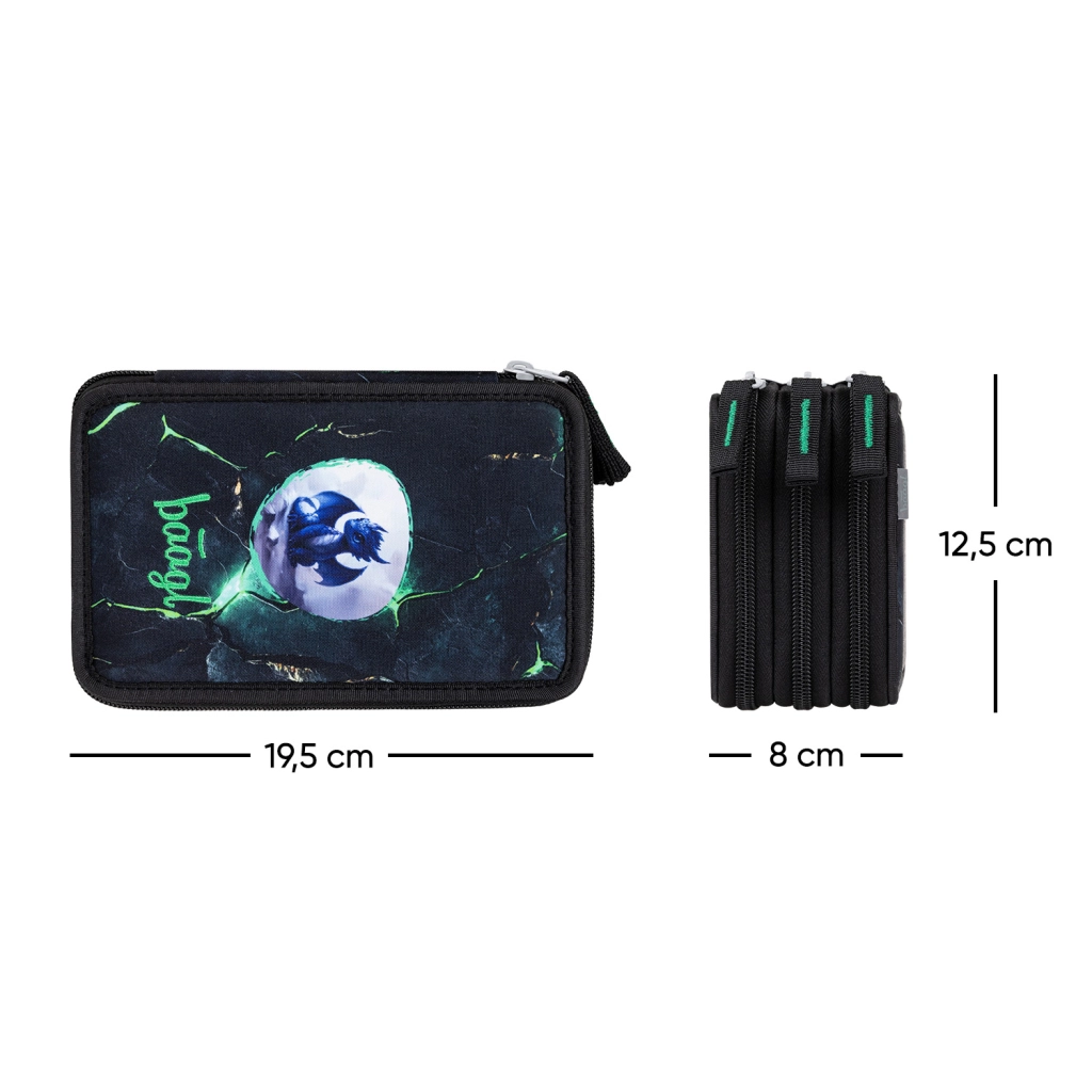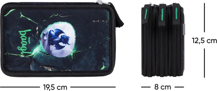 Fedezze fel a praktikus és strapabíró, háromszintes BAAGL tolltartót feltűnő sárkánymotívummal. A három különálló cipzáras rekesz áttekinthető tárolást biztosít mindenhez, amire egy diáknek szüksége lehet – a színes ceruzáktól és filcektől a vonalzón és radíron át. A márkás YKK cipzárak és a megerősített konstrukció hosszú élettartamot garantálnak a mindennapos használat mellett is.