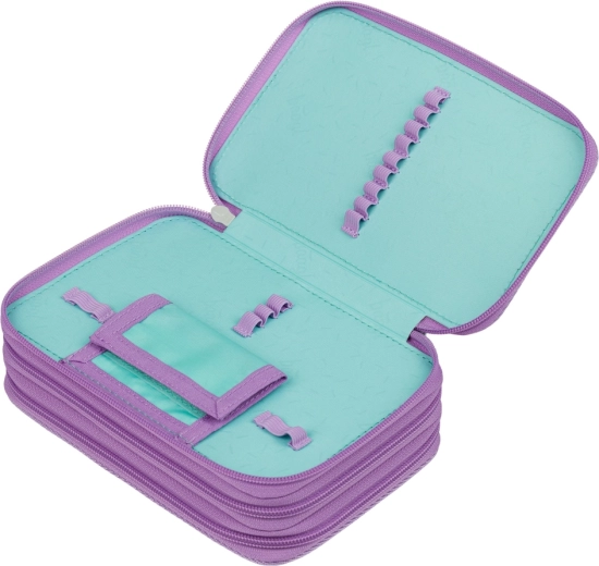 Ez a háromszintes iskolai tolltartó Levendula árnyalatban a maximális áttekinthetőségre és kényelemre készült a mindennapi használathoz. A három különálló rekesz bőséges helyet ad színes ceruzáknak, filceknek, tollaknak, vonalzóknak és apróságoknak, miközben a minőségi YKK cipzárak sima és tartósan megbízható záródást nyújtanak.