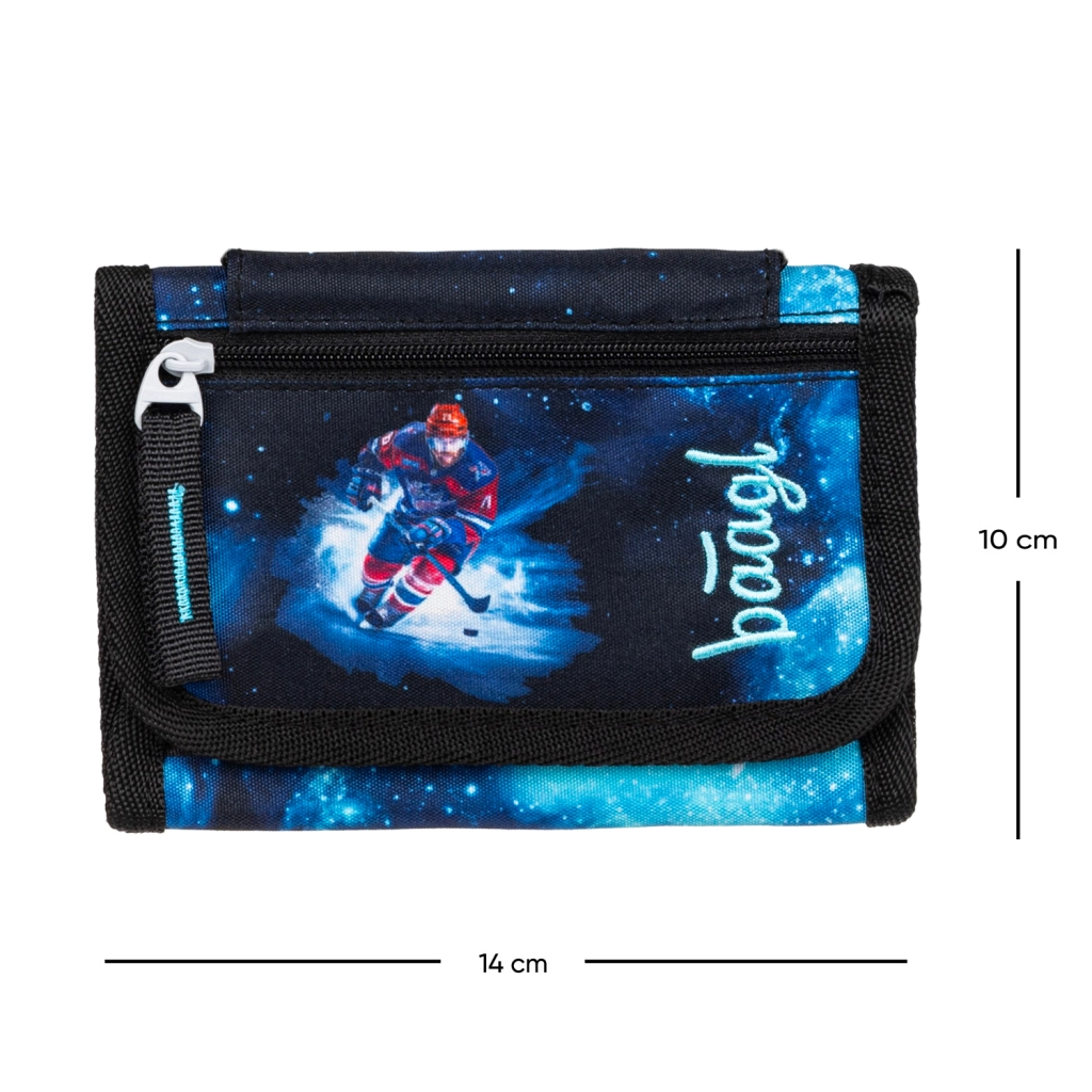 A jégkorongos grafika megszólítja a fiatal sportolókat, és egyedi megjelenést kölcsönöz a pénztárcának.